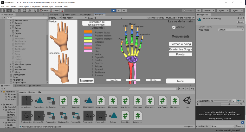 Lien : https://www.supinfo.com/articles/single/7149-creer-utiliser-animations-unity, https://openclassrooms.com/forum/sujet/unity-declenchement-animation-avec-trigger, https://forum.unity.com/threads/how-to-activate-animation-just-when-give-click-on-a-button.379922/, https://answers.unity.com/questions/7555/how-do-i-call-a-function-in-another-gameobjects-sc.html, https://stackoverflow.com/questions/31593008/changing-color-of-of-gameobject-in-unity, https://www.google.com/search?q=Os+de+l%27avant+bras&client=firefox-b-d&sxsrf=ALeKk03MOWN1dORpZ3_OD0KzrRVDxrMMWw:1589317994845&source=lnms&tbm=isch&sa=X&ved=2ahUKEwi-55H0nq_pAhXflHIEHYcDBnEQ_AUoAXoECA8QAw&biw=1536&bih=750#imgrc=QyfaHLq9LzcNsM, https://www.google.com/search?q=os+de+la+main&client=firefox-b-d&sxsrf=ALeKk03cml7DhoPyS9UZVN6ibMYUFCgcEQ:1589313979150&tbm=isch&source=iu&ictx=1&fir=l3Gl92_iyd2VuM%253A%252CP-BZoiPg8vq2WM%252C_&vet=1&usg=AI4_-kSe5RrDAI9eSpZ8a1hs2yyRIj-Qxg&sa=X&ved=2ahUKEwiRoaf5j6_pAhXVhHIEHZJfAvYQ9QEwAHoECAoQHQ#imgrc=GUYlBpfidDzenM.